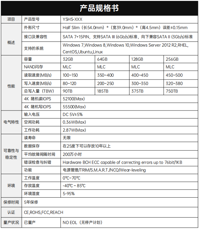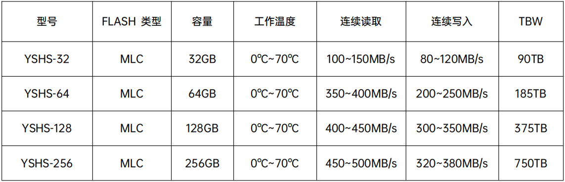 YSHS-XXX具有高性能,低功耗等特點(diǎn),是存儲設(shè)備和計(jì)算機(jī)存儲應(yīng)用的完美解決方案,先進(jìn)的閃存管理算法保證更高的性能和數(shù)據(jù)完整性。